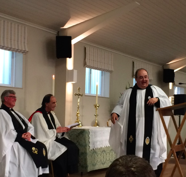 It began on Sunday, in the new refurbished pavilion, with the traditional service led by the Canon Geoffrey Gwyther. He’s pictured below on the left, laughing at a joke made by the guest preacher, Canon Dorrien Davies, from St David’s Cathedral.