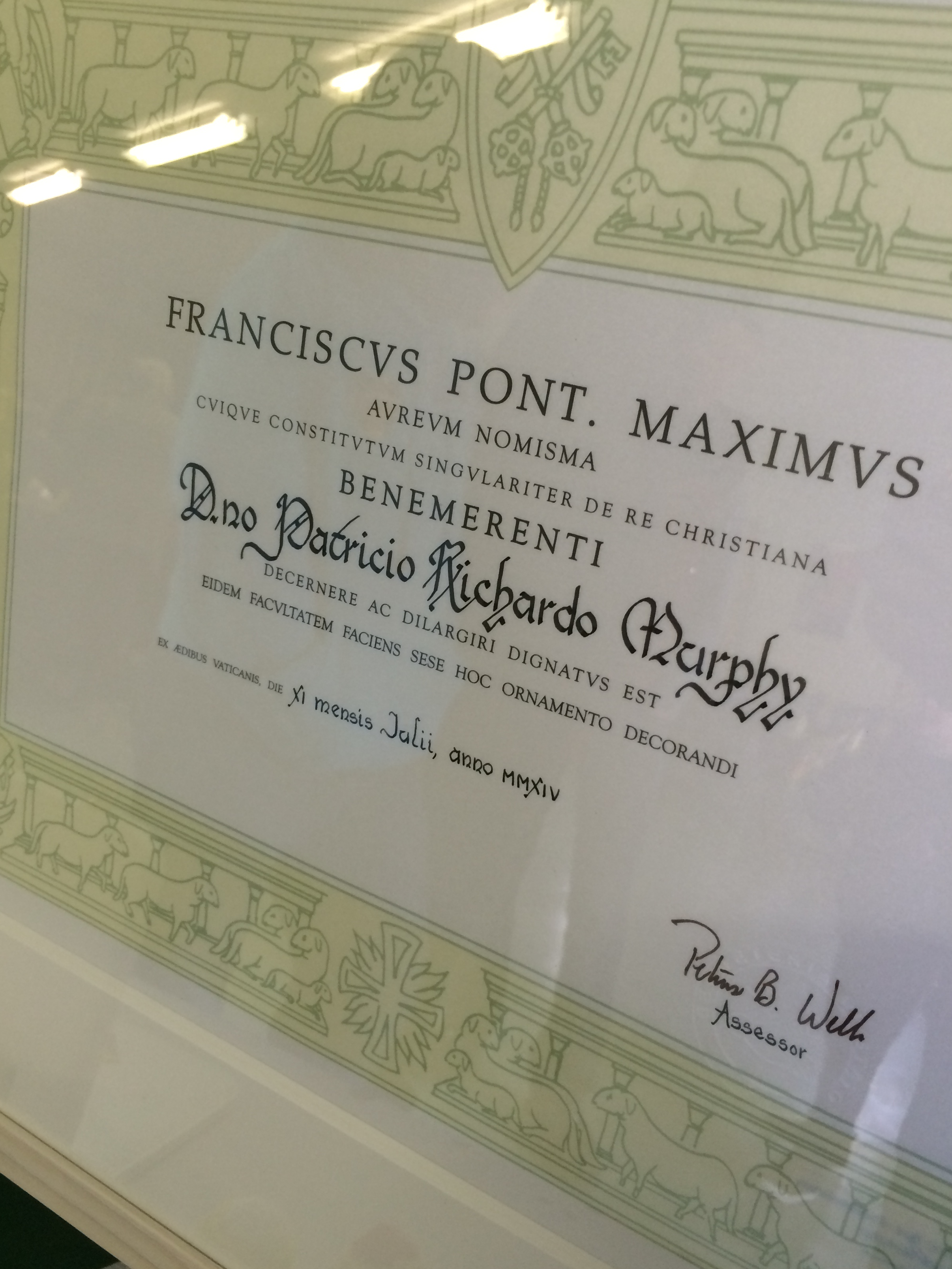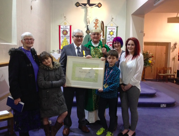 16th January 2015: Bishop Tom visited the parish on his pastoral visitation of the diocese and, while with us, presented the Benemerenti Medal to Pat Murphy on behalf of Pope Francis.