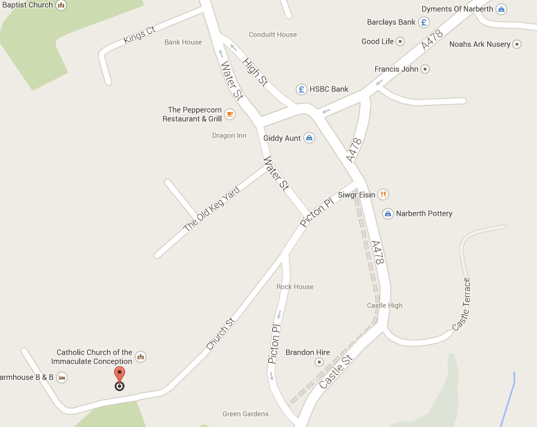 In Narberth – Immaculate Conception Catholic Church, Church Street, Narberth, Pembrokeshire, SA67 7BH.